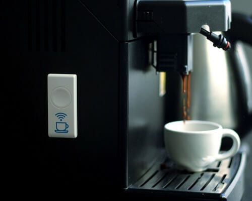 Het klinkt misschien wat vreemd, maar voor sommige mensen is koffie een primaire levensbehoefte. Want zeg nu zelf, hoe is de sfeer op kantoor als de koffiebonen of -melk op zijn? Dankzij een extern geïnstalleerde sensor, bij voorkeur met een besteltoets, zorg je ervoor dat je koffiemachine altijd operationeel is. We kunnen ook een knop inbouwen die zorgt voor een automatische oproep voor service en/of aanvulling. Op die manier zit jouw machine nooit meer zonder melk of koffiebonen te zitten!